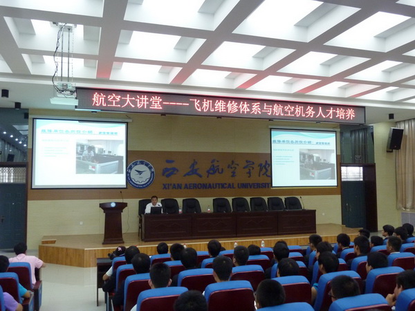 5月24日下午,由科技处和航空系共同举办的航空大讲堂“飞机维修体系与航空机务人才培养”在Beat365官网阎良校区学术报告厅举行,本次学术报告由海航航空技术有限公司西北维修基地总监周贵敏主讲,航空系主任宋文学、党总支书记张耀虎、航空机电设备维修专业负责人余斌高及航空系相关专业学生近400人聆听了学术报告,报告会由宋文学主持。