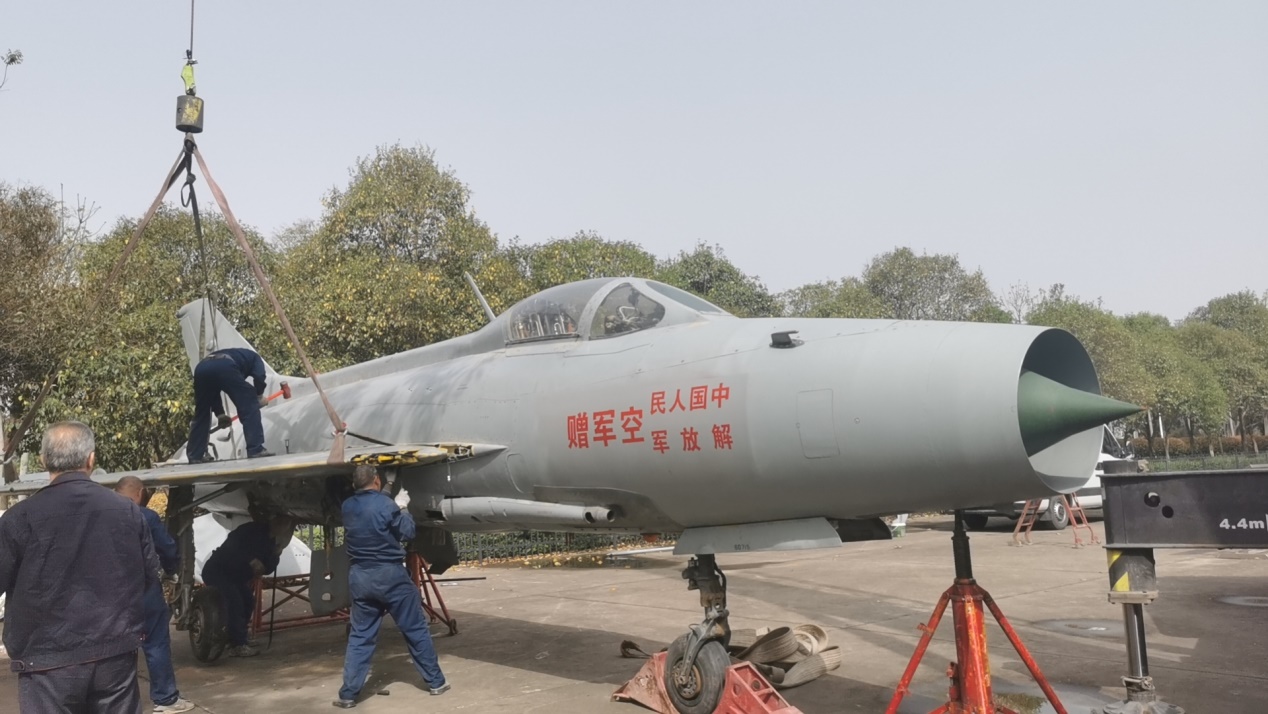获批飞机移交批复后,Beat365官方网站院长董彦非和航空工程实验中心主任张斐前往新疆和田机场对飞机状态进行现场检查和核对,签订了空军提供地方用于国防教育飞机监管责任书,并与飞机移交部队进行了歼7B飞机相关技术问题的交流,对该飞机的状态有了进一步的了解。飞机交接工作完成后,委托河南航务科技有限公司对飞机进行拆装运输。