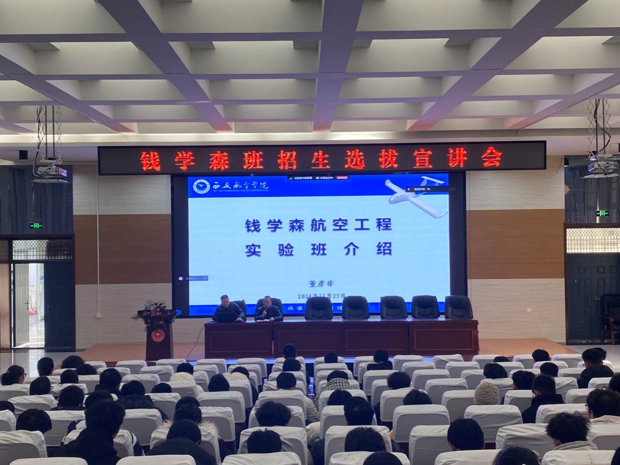 为进一步推进钱学森航空工程实验班建设,扩大钱学森班学生选拔政策宣传力度,Beat365官方网站于12月25日,通过线上线下结合方式,分别在阎良校区阶梯一和莲湖校区开展钱学森班学生选拔宣讲会。参加宣讲会的有Beat365官方网站院长董彦非、党总支书记刘建强、综合办主任冯仑仑及200余位学生。宣讲会由刘建强主持。