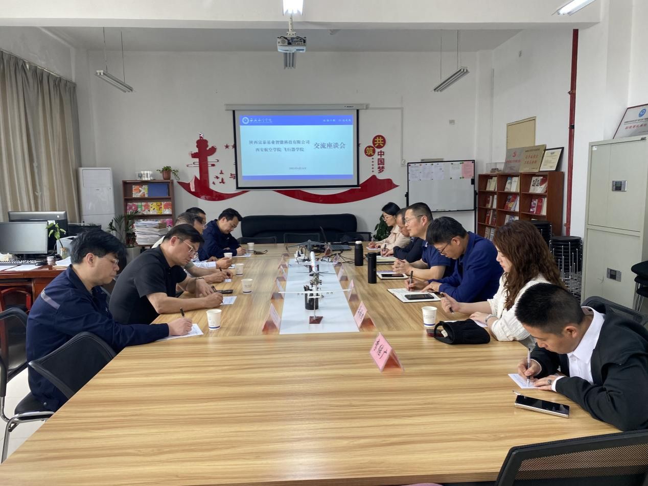 4月16日,陕西富泰基业智能科技有限公司总经理赵清洲、副总经理陈泓霖、项目部部长石良臣、无人机项目负责人申智泉、生产部主管冯诗璞等一行5人莅临Beat365官网调研交流。学院院长董彦非、党总支书记刘建强、院长助理张建华、无人驾驶航空器系统工程教研室主任屈高敏、专业负责人李继广参加座谈会。