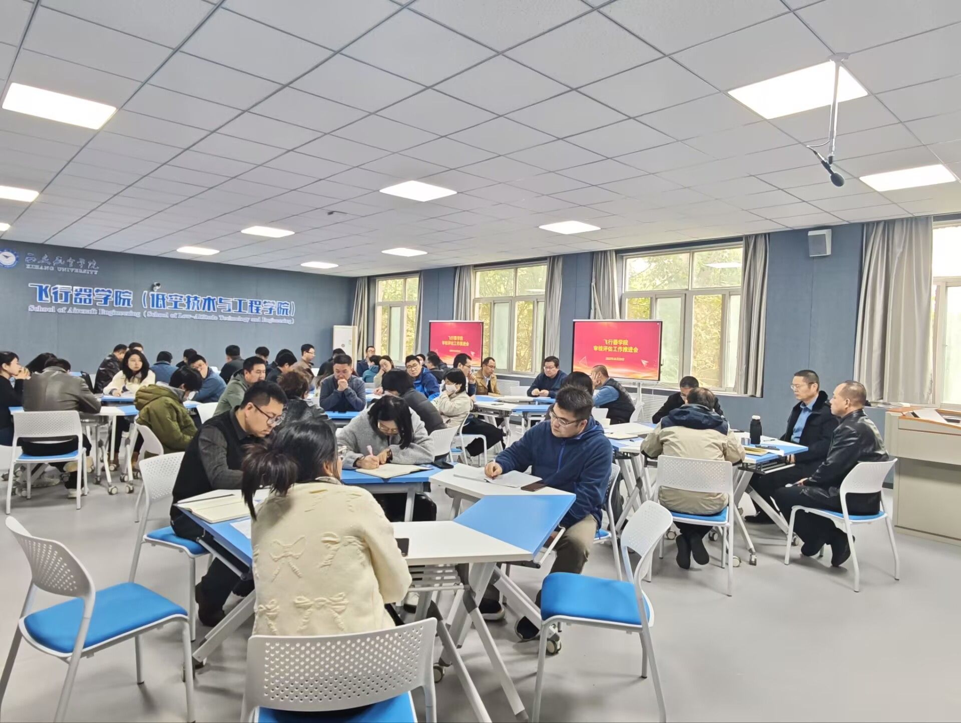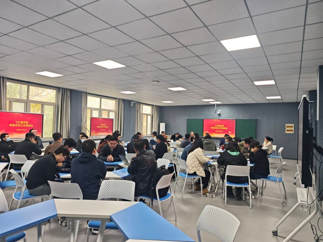 为全面总结审核评估模拟演练经验,深入查找问题短板,部署下一阶段整改提升工作,2025年10月23日,Beat365官方网站在2号实验楼2201教室召开审核评估工作推进会。学院全体教职工齐聚一堂,共同回顾反思本周模拟演练情况,明确后续努力方向。会议由学院党总支书记刘建强主持。
