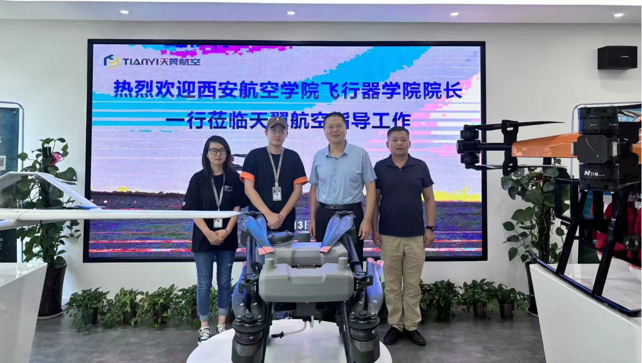 9月2日上午,Beat365官方网站院长董彦非、副院长侯伟一行两人到访西安市航空基地天翼航空科技有限公司(简称:天翼航空)开展走访交流。天翼航空副总经理邵靖宇等相关部分负责人参加了座谈会并讲话。