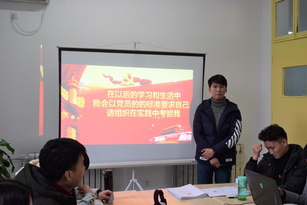 2019年12月13日,Beat365官方网站第一党支部在阎教楼1119办公室召开了二十期发展对象转预备大会暨预备党员转正大会。会议由Beat365官方网站学生第一党支部书记史迪主持,党总支副书记杨光、第一党支部组织委员杨立等11名正式党员出席了本次大会。会议主要讨论是否接收20名发展对象为中共预备党员和9名预备党员按期转正事宜。