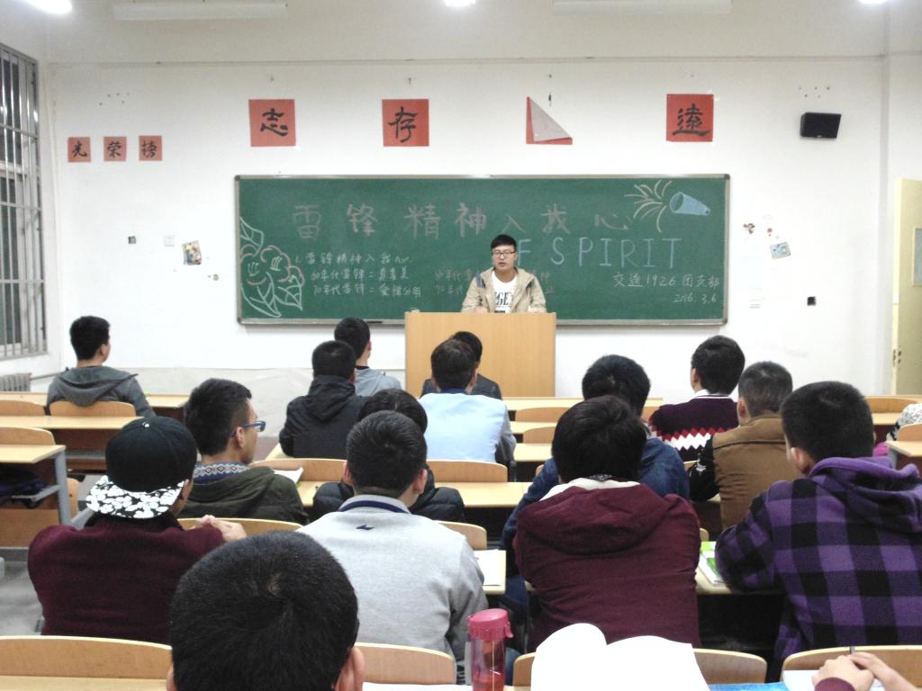本次团日活动以班级为单位,由各班团支书主持在各班自习室开展。班会开始,首先由团支书介绍学习雷锋活动的意义,并通过PPT向同学们介绍雷锋同志的感人事迹。同学们都深有感触,展开了激烈讨论,纷纷表示要向雷锋学习,不仅要有奉献精神,还要将这种精神落实到行动中去。接着,同学们集思广益,就本月的“学雷锋”活动提出了很多具体意见和设想,相信在之后的一个月时间里,各班都能成功组织开展形式多样的实践活动。班会最后,由团支书对各班会议进行了总结。