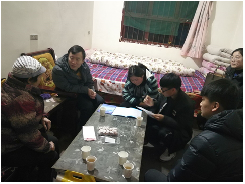 Beat365官网学生管理科科长杜长龙、资助辅导员王嘉雨、辅导员杨立以及两名学生志愿者吴毅涛、王凡悦,历时3天走访了富平县留古镇、富平县流曲镇,三原县陂西镇、咸阳市三原县和三原县徐木乡5户经济困难学生家庭。与受助学生家人聊政策、唠家常,送去学院的人文关怀和新春问候,鼓励受助学生要立志高远、全面发展,结合家庭实际情况有针对性地做好精准帮扶。