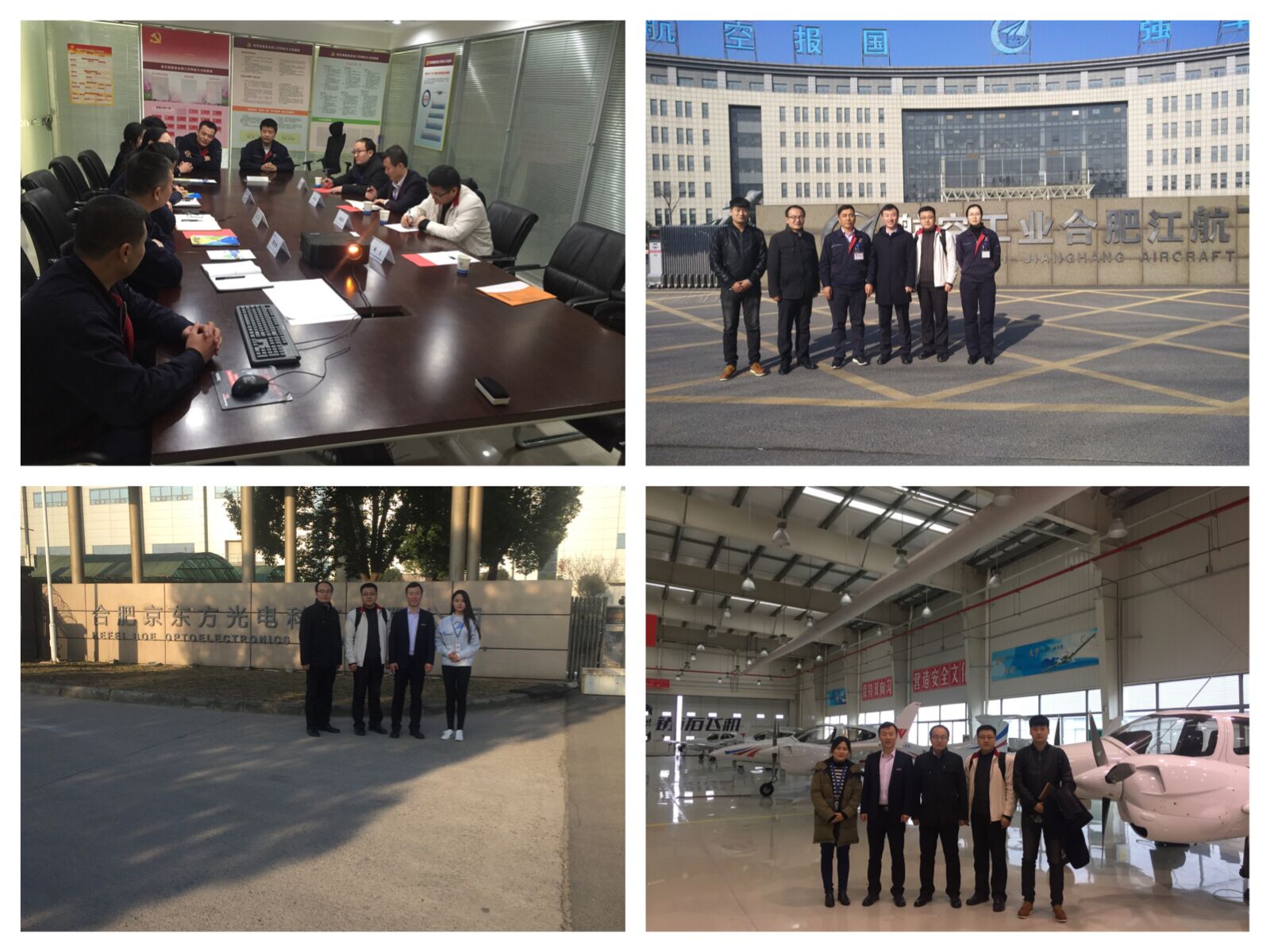 调研组走访考察了航空工业合肥江航飞机装备有限公司、合肥京东方光电科技有限公司、中国人民解放军第五七二零工厂、中电科芜湖钻石飞机制造有限公司、芜湖航空产业园并与各单位负责人和人力资源相关领导进行了深入交流。座谈会上,杜长龙详细介绍了学校的发展状况、招生就业、人才培养模式等情况,着重就学校升本以来,应用型人才培养情况与企业人力资源部门领导进行了探讨和交流。各企业负责人也简要介绍了企业发展和产品研发进展,双方就人才培养体系、校企科研合作等方面进行了探讨。调研组还详细询问了企业的招聘计划、人才需求、招聘模式和毕业生到企业后的发展前景。会后,调研人员深入企业一线和员工生活区,实地考察了学生工作岗位和生活环境。