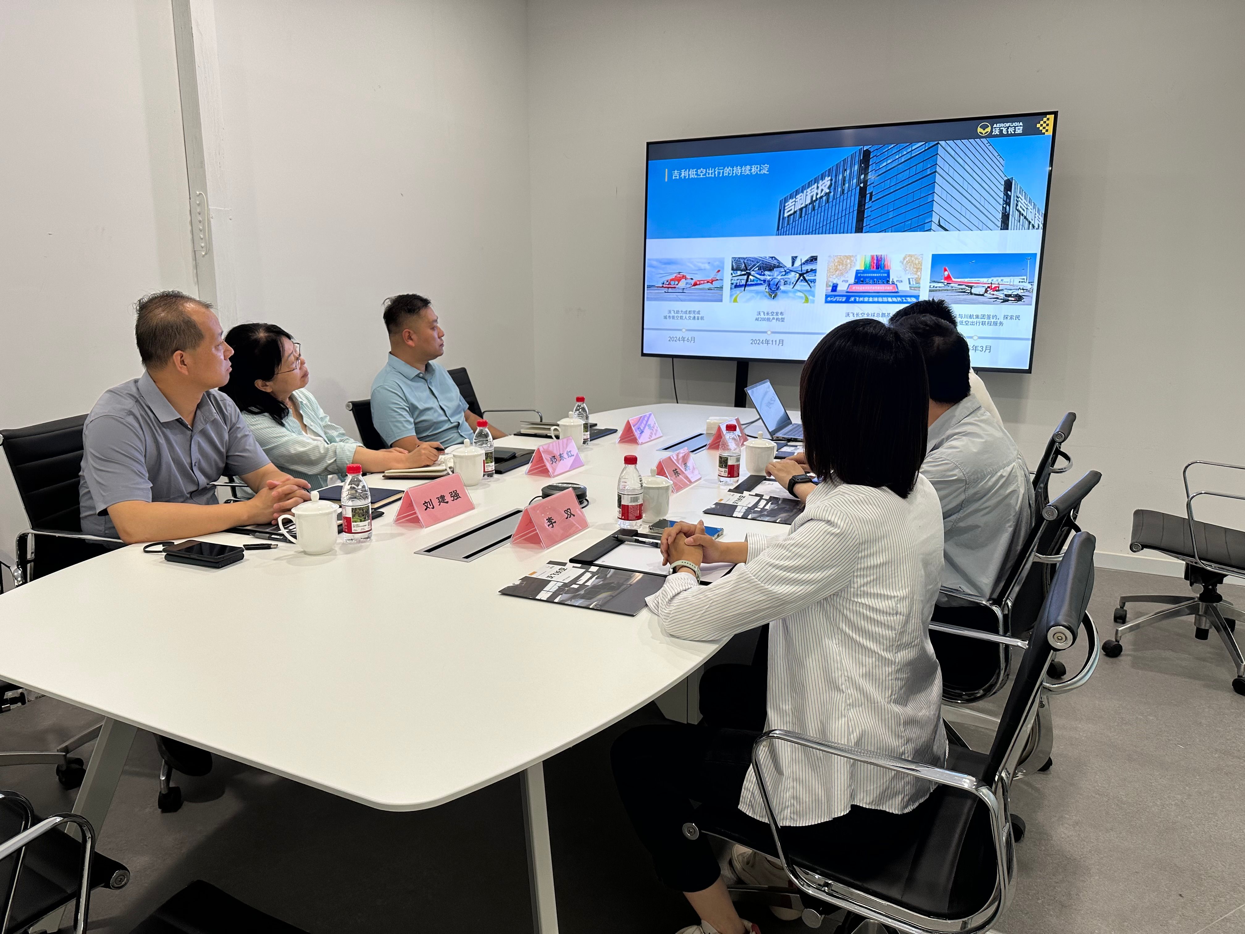 刘建强一行在四川沃飞长空科技发展有限公司招聘主管李双的带领下参观了公司展厅,随后进行了座谈交流。