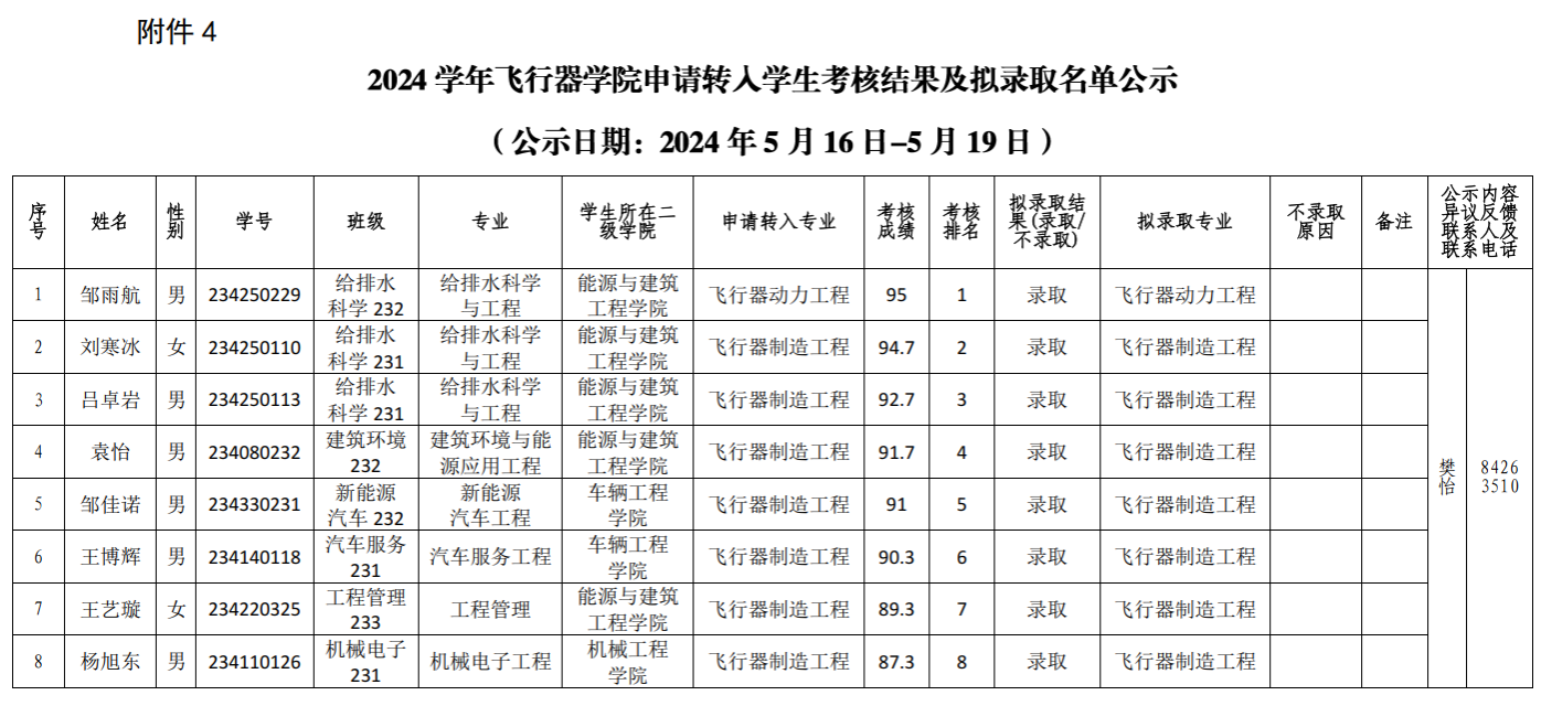 2024学年Beat365官方网站申请转入学生考核结果及拟录取名单公示